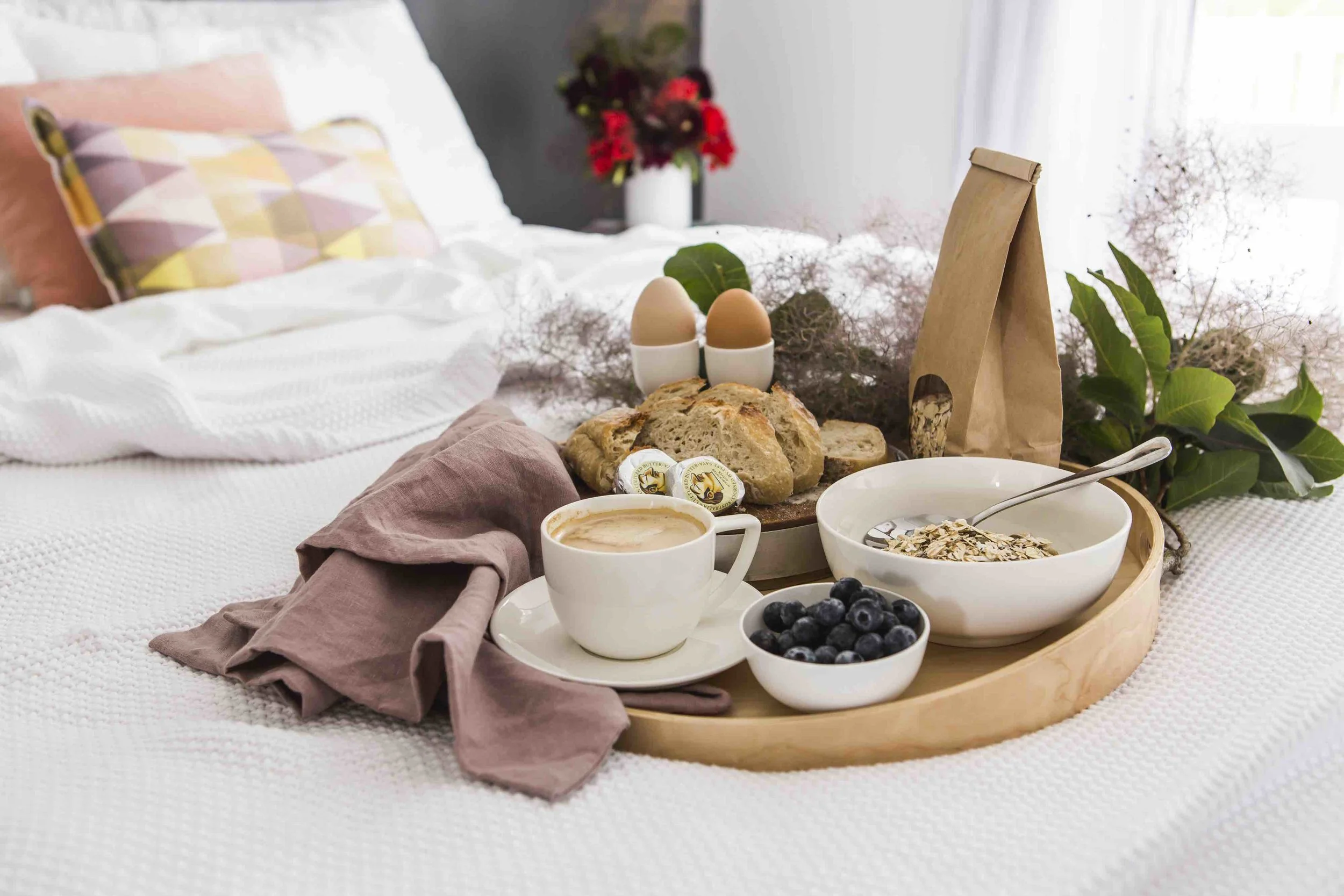 We stayed in The Loft, a spacious one bedroom with en-suite bathroom, lounge area and open plan full kitchen. The fridge was filled with seasonal fruit, sparkling water, organic yoghurt, local milk and hand-churned butter. The kitchen bench stocked with freshly baked bread, homemade muesli and jams, more fresh fruit, chocolates and a basket of eggs. There is none of this "did you have anything from the mini bar?’" at this abode; as it is all included in your stay.