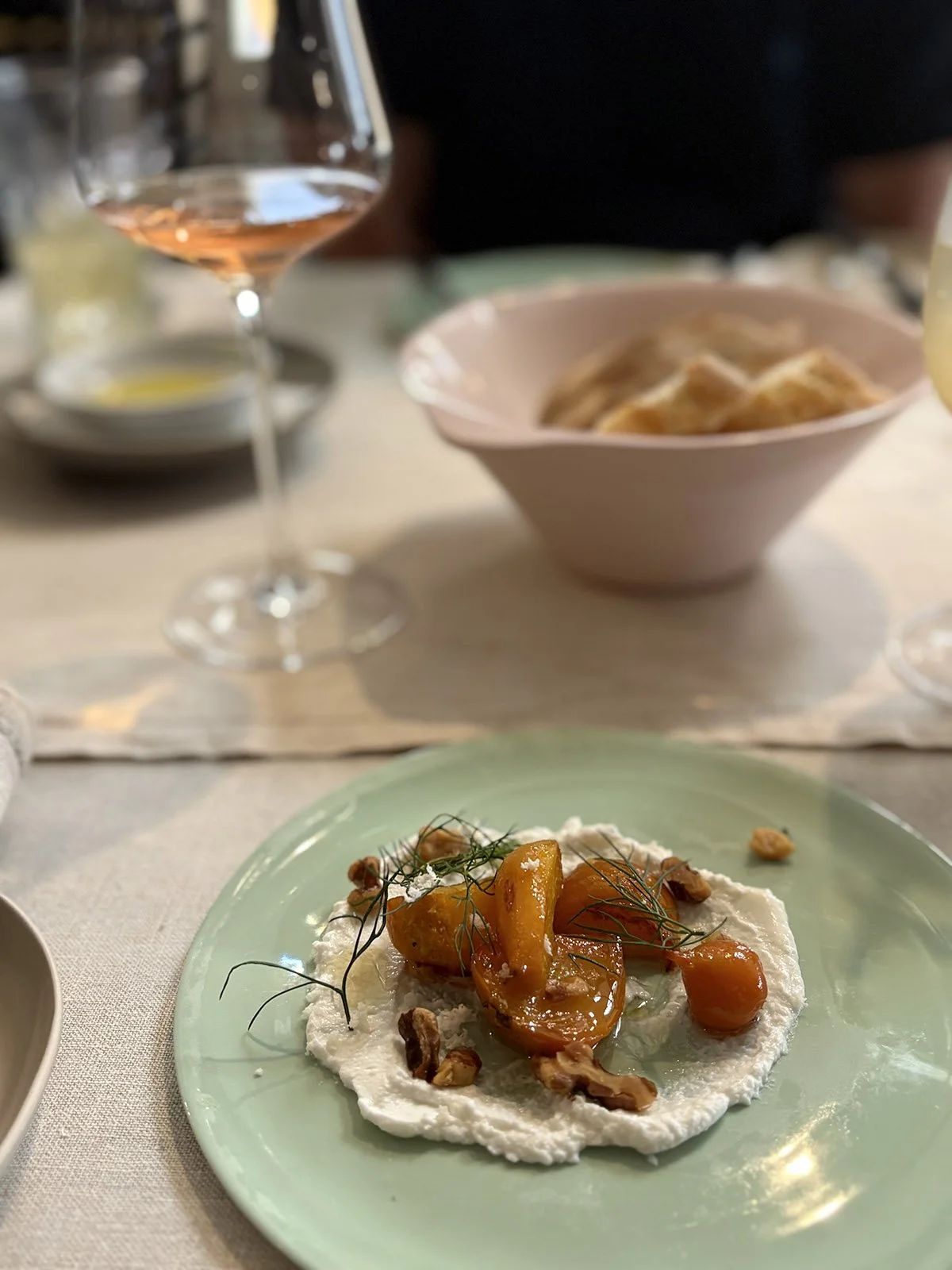 Beetroot Salad ~ Boldor golden beets, reaming goats chevre, roasted walnuts,